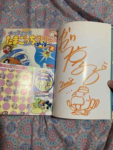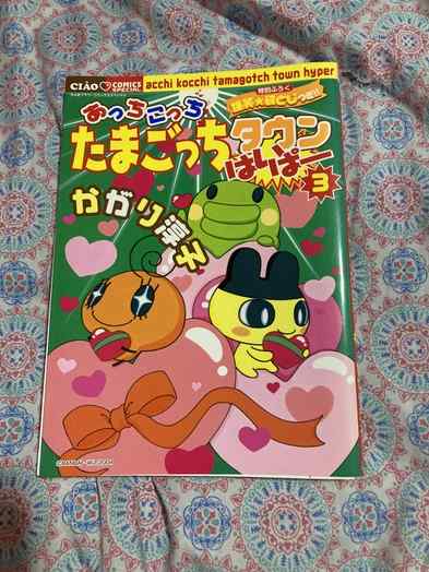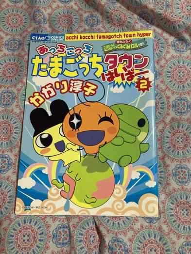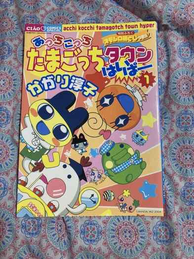 my copies of Acchi Kocchi Tamagotchi Town Hyper 1, 2, and 3! unfortunately i can't understand anything they say yet, since i don't know virtually any Japanese, but i adore the artwork of these manga sooo much! easily some of the most prized items in my collection. my copy of the 2nd issue even has an autograph from one of the artists! it's a cute little doodle of