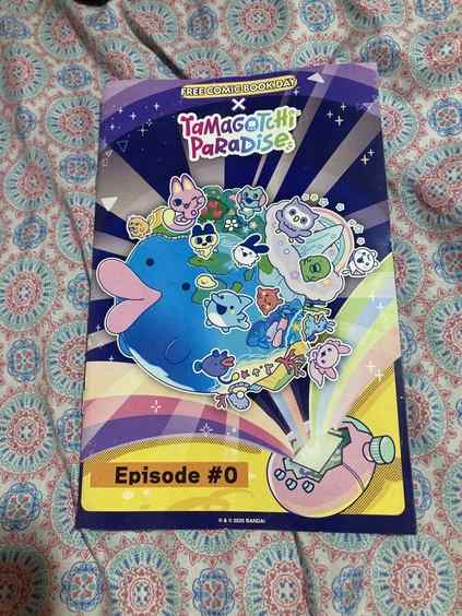 my copy of the Tamagotchi Paradise comic! it was released in 2025 for Free Comic Book Day. i was lucky enough to have my local comic book store save one aside for me, since my dad was on a trip when Free Comic Book Day was. it's kind of short, but i like the art in it a lot.